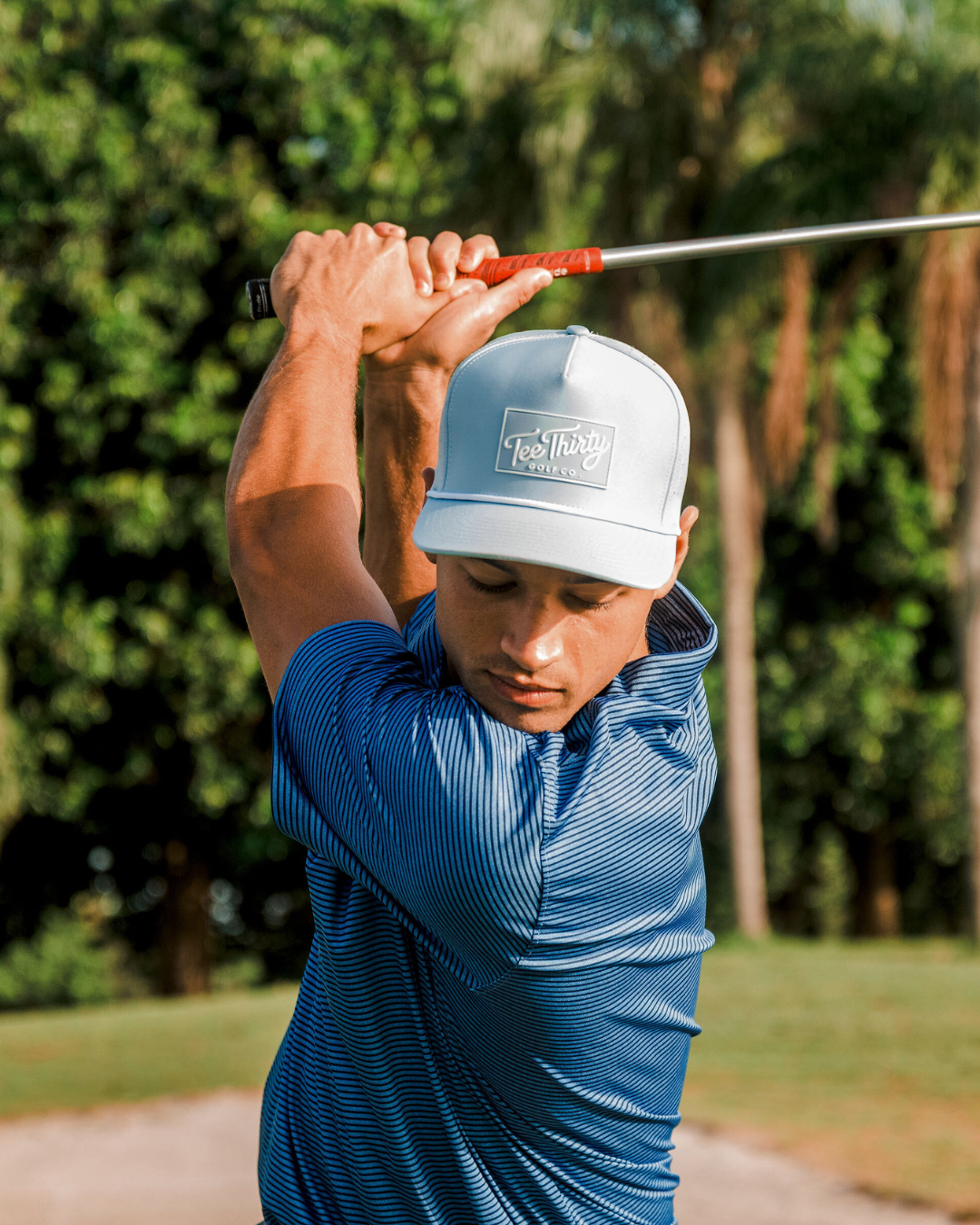 Timeless style, modern performance. The Signature Series is a refined staple in the Tee Thirty lineup—crafted with a premium rubber patch featuring the Tee Thirty Golf Co. mark front and center. The classic rope detail across the visor adds a subtle throwback touch, merging modern performance with timeless golf style.